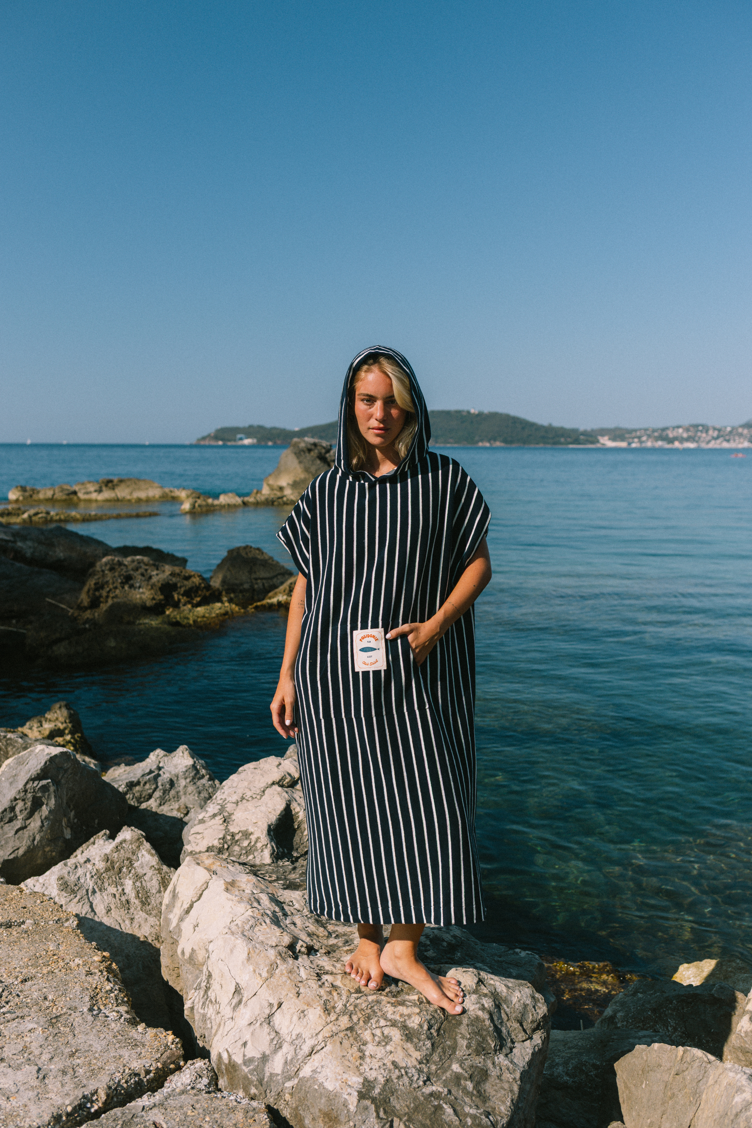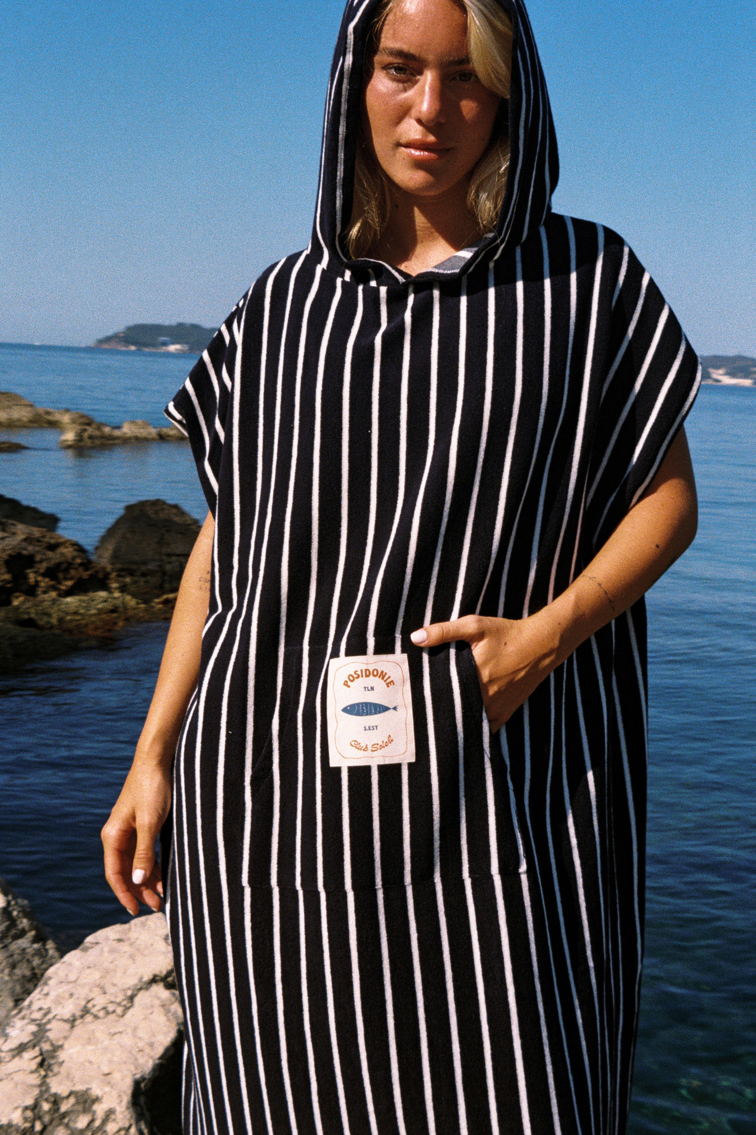 Poncho de plage fait d'une matière douce et absorbante, l'indispensable de votre après baignade.