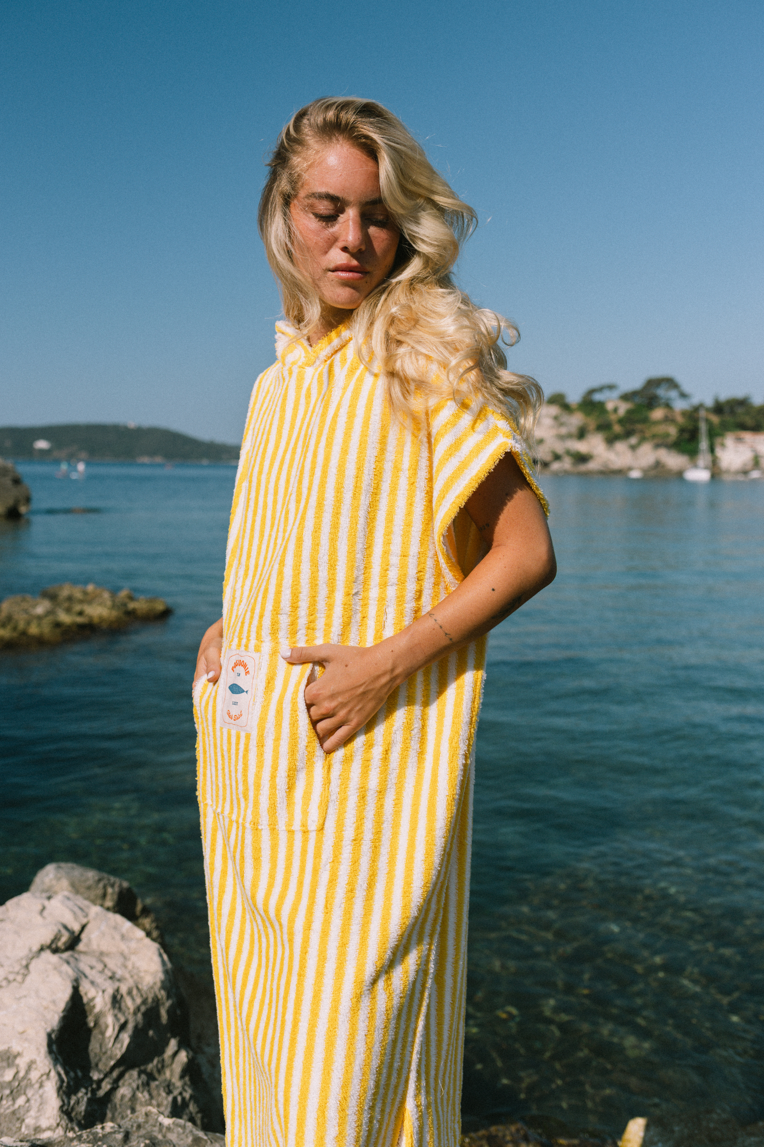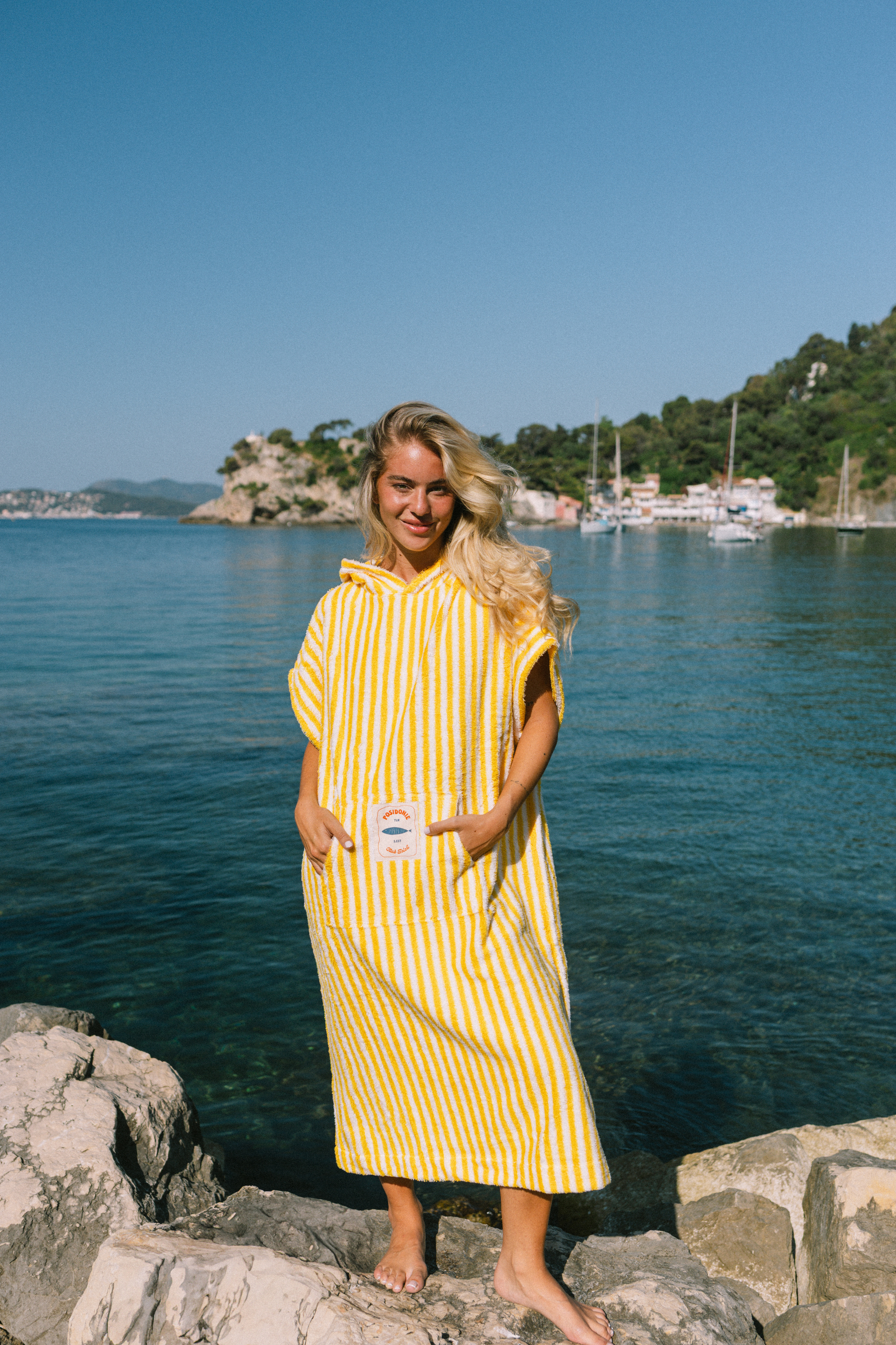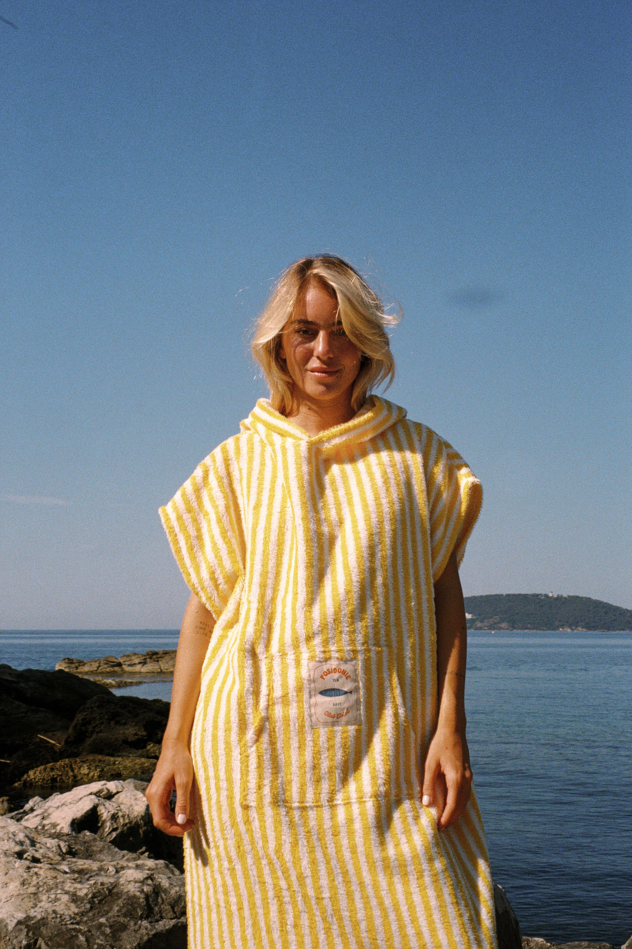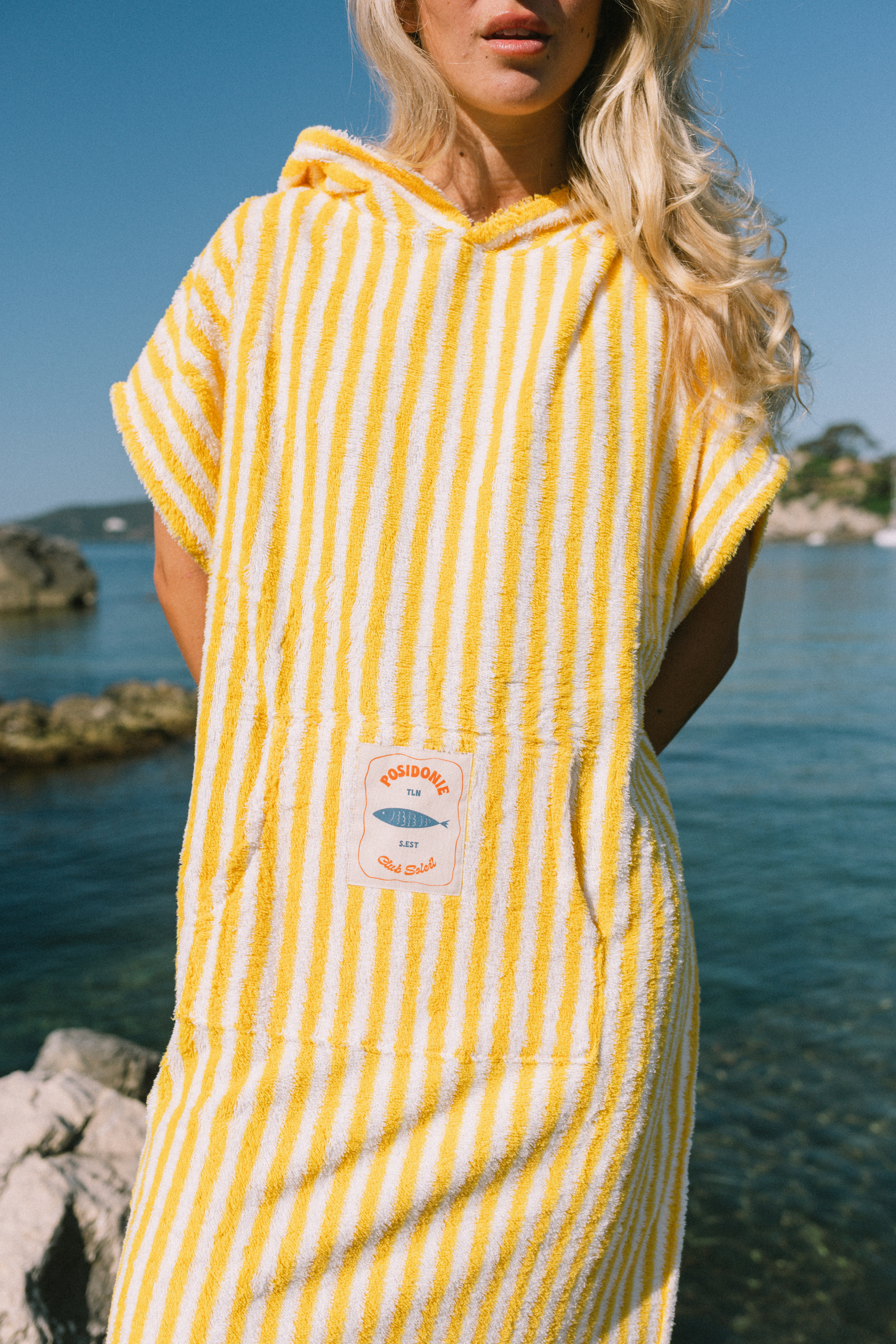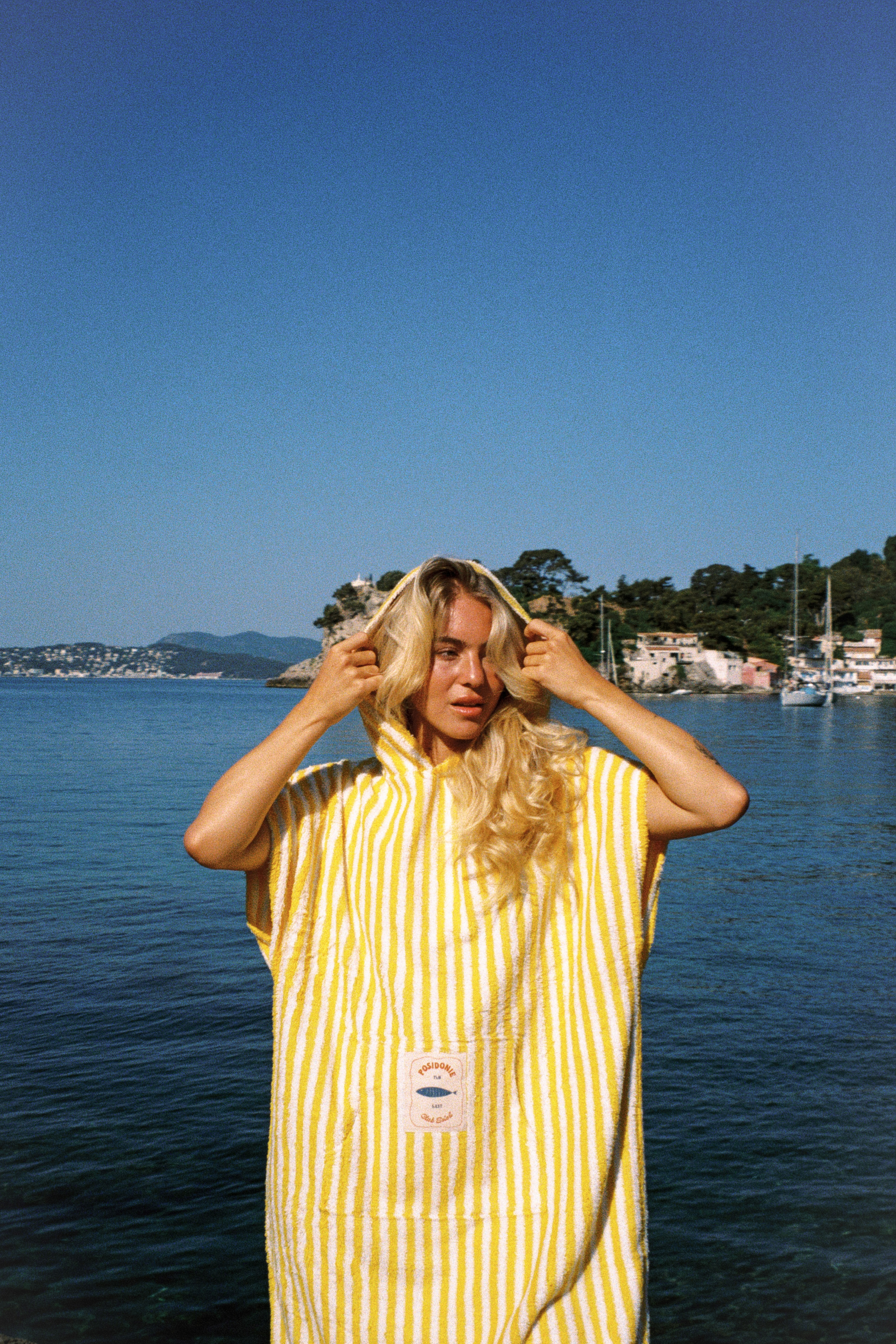 Poncho de plage fait d'une matière douce et absorbante, l'indispensable de votre après baignade.