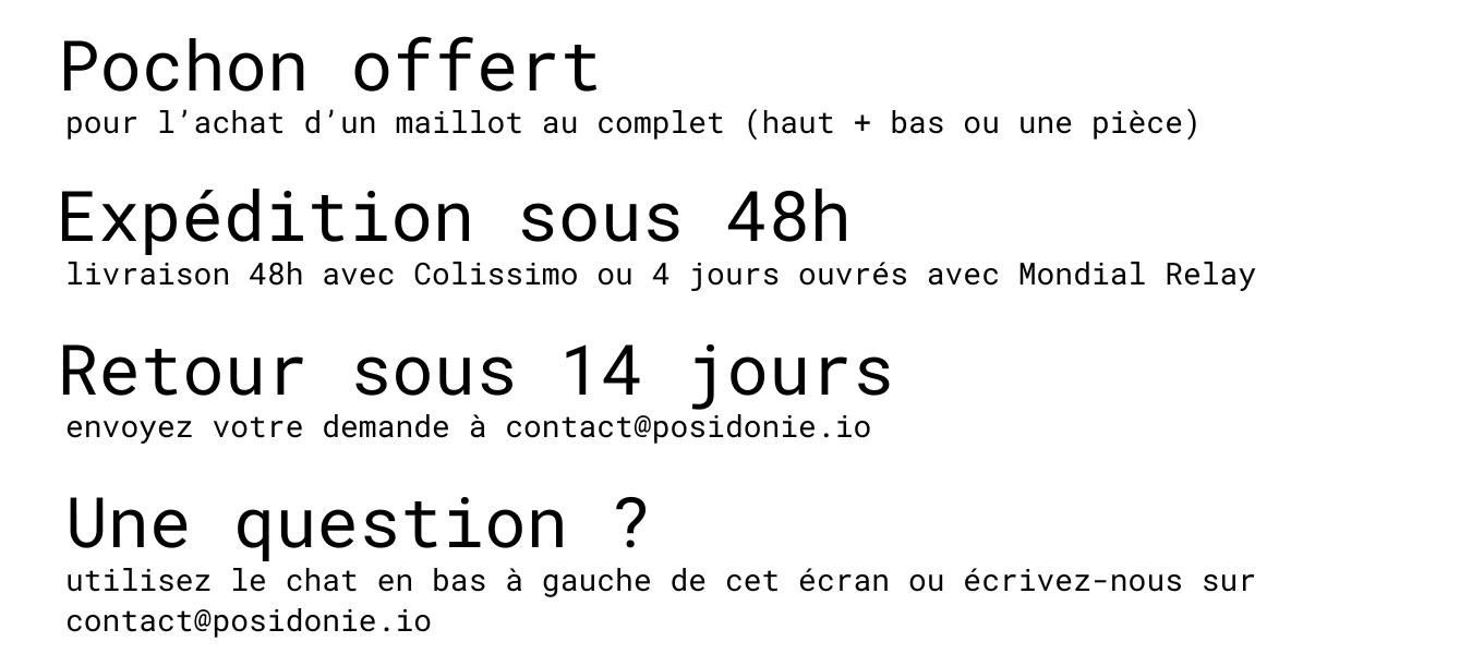 En cas de doutes ou de questions sur la taille, n'hésitez pas à nous écrire à contact@posidonie.io