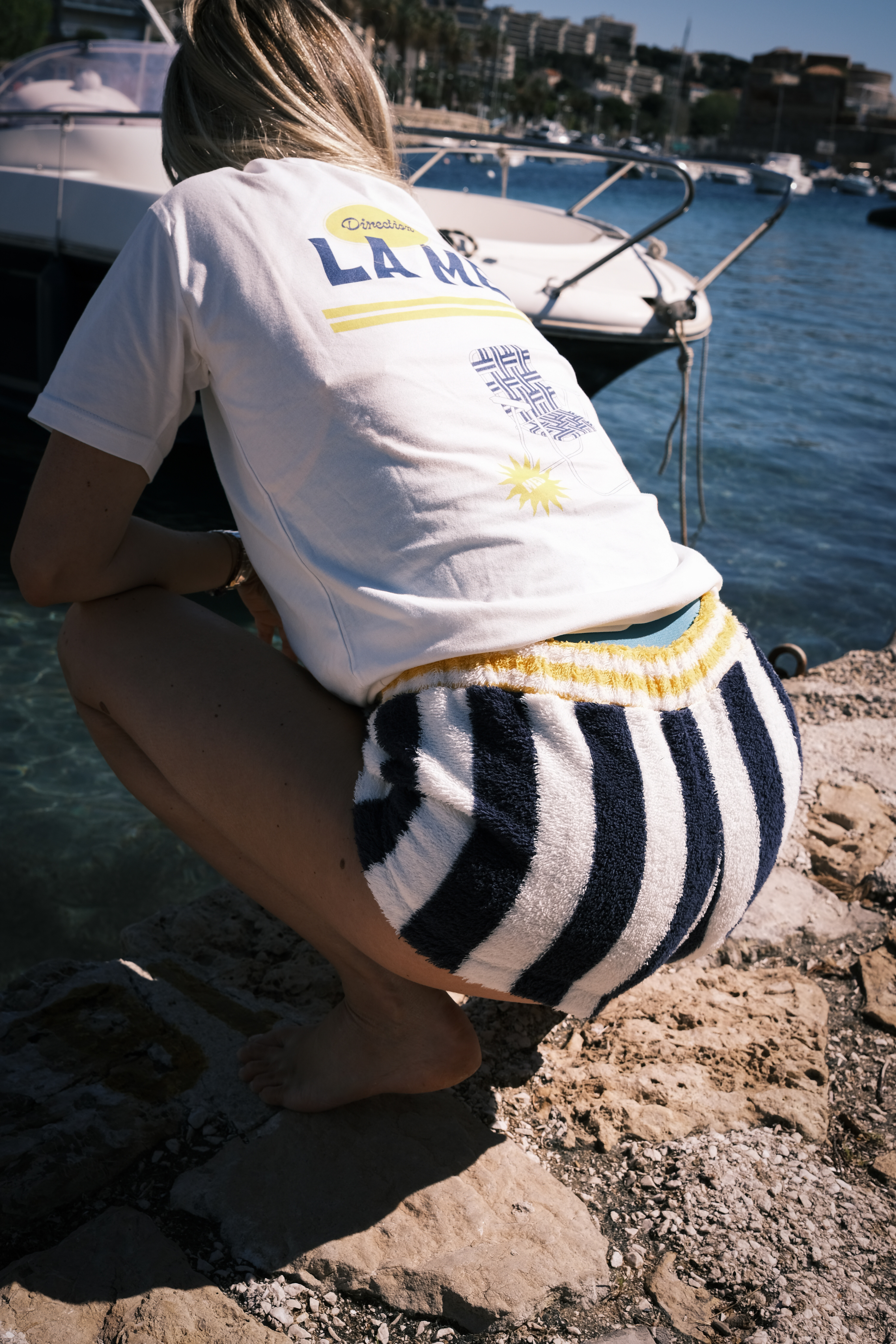 Paréo Fleurs Noires 70s - Blanc Dentelle de bain